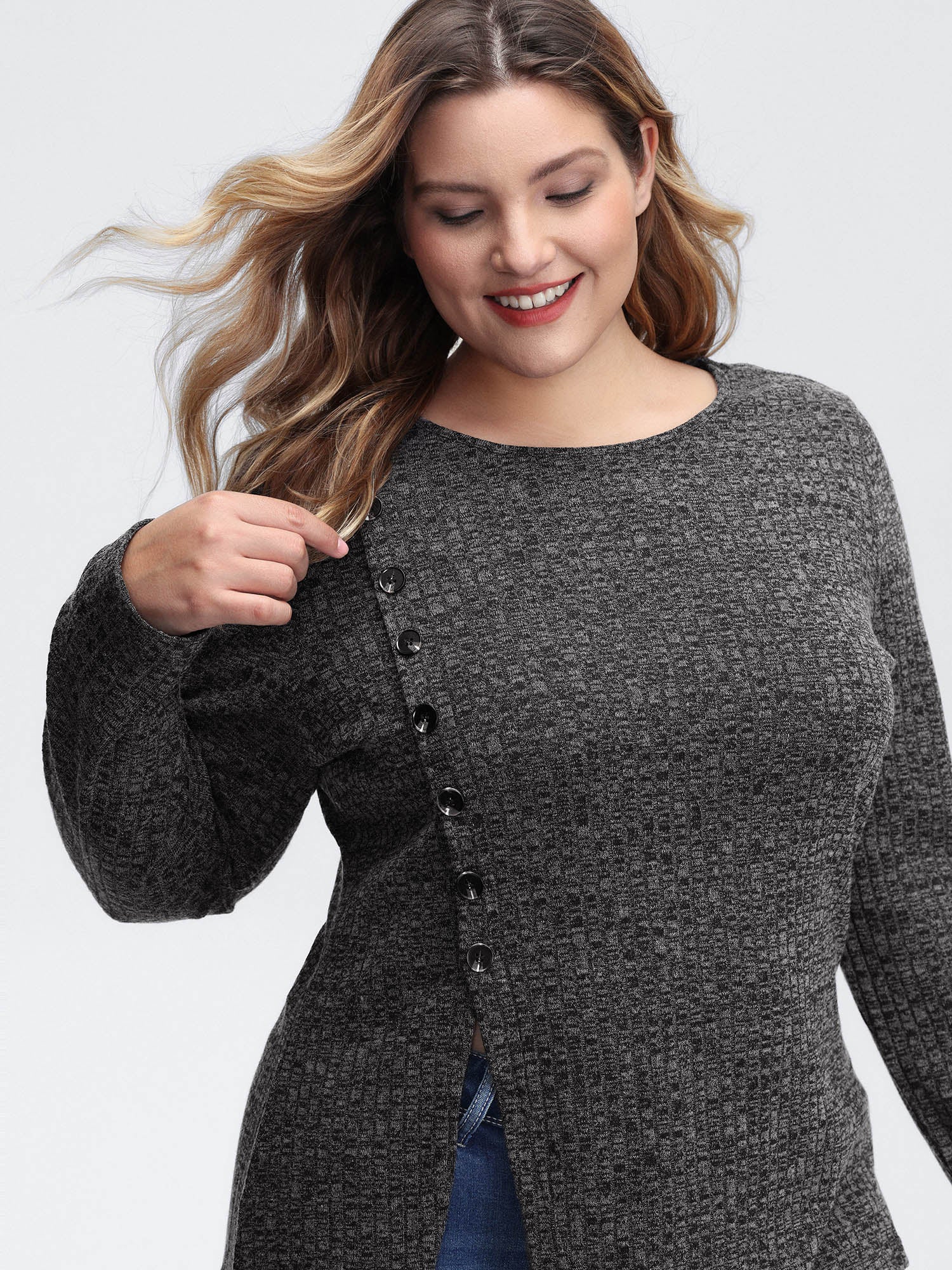 Stretchy Side Button Detail Slit T-Shirt