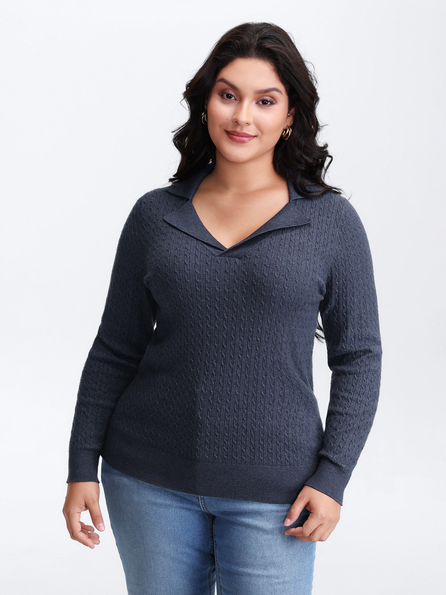 Supersoft Cable Knit Blazer Collar Fitted Pullover