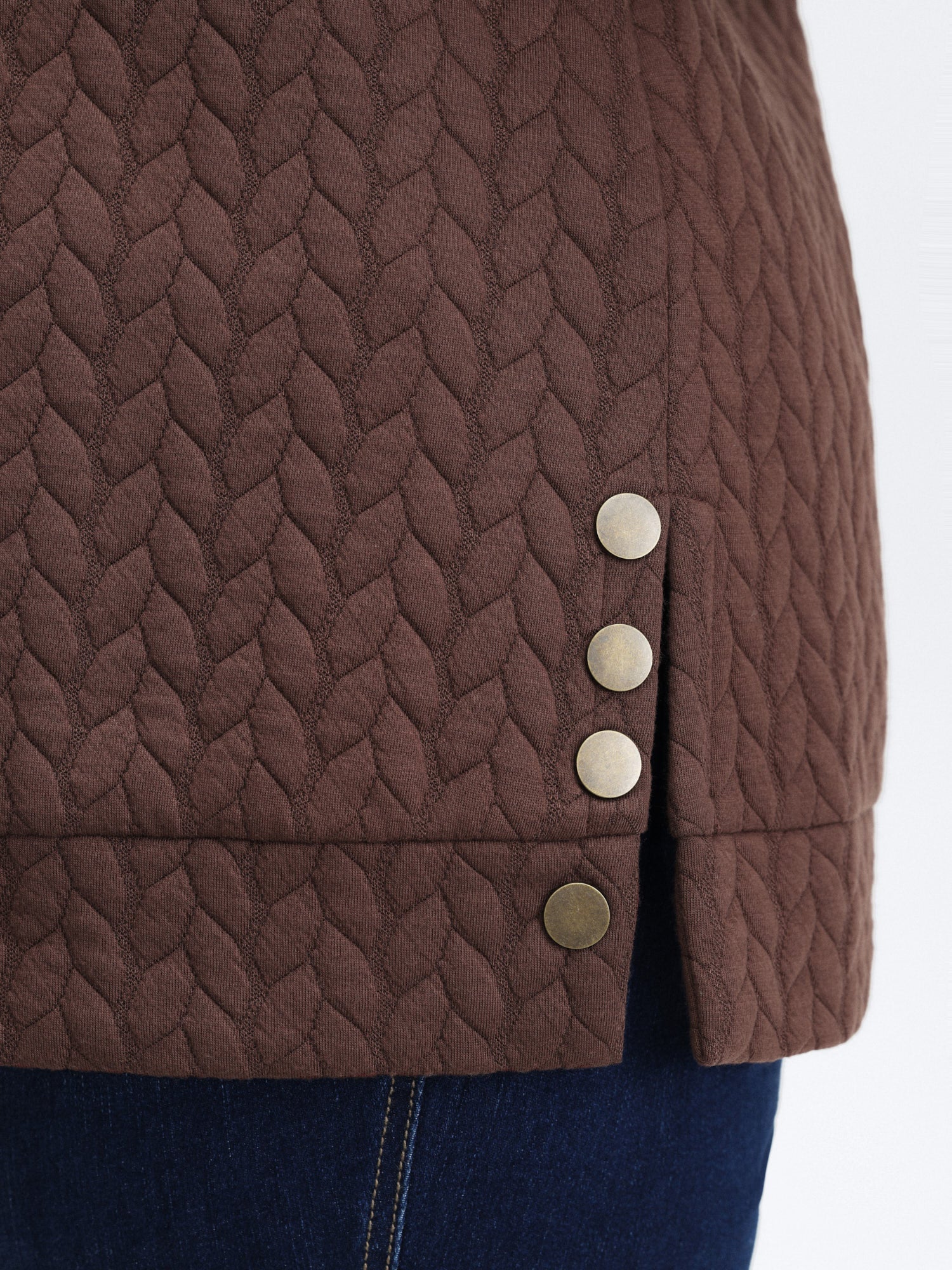 Textured Side Slit Round Neck Sweatshirt