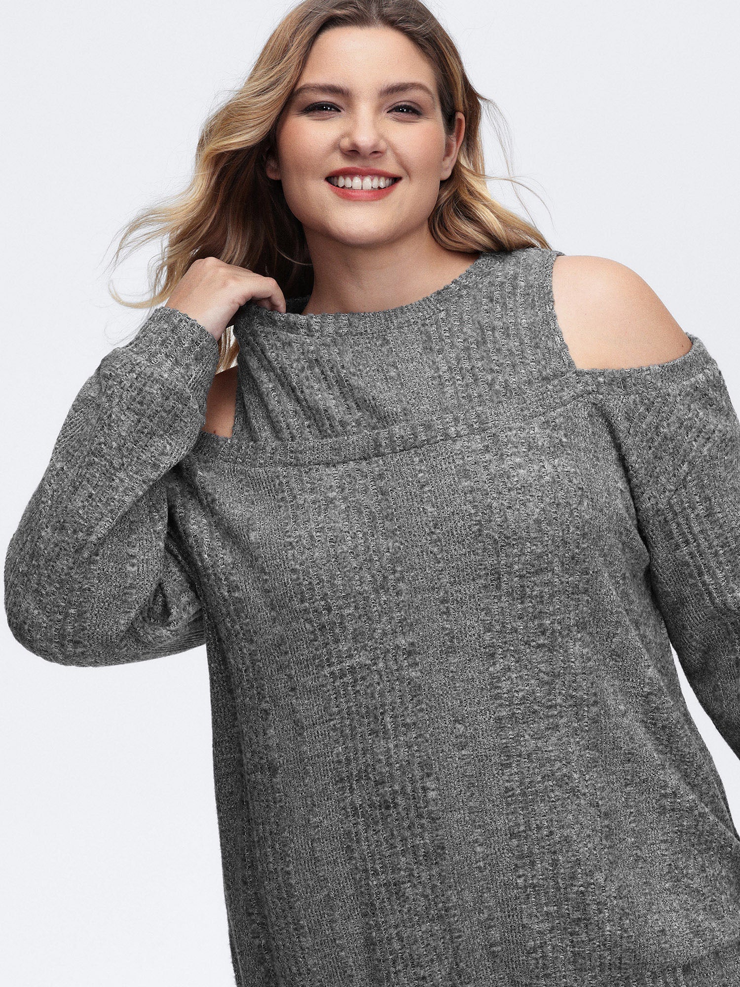 Off-Shoulder Textured Solid Sweatshirt